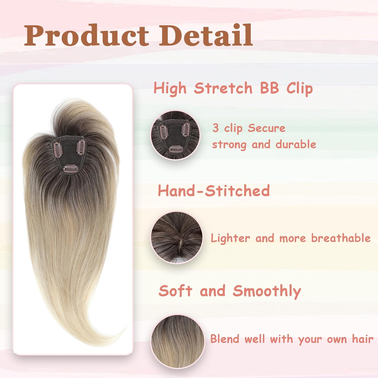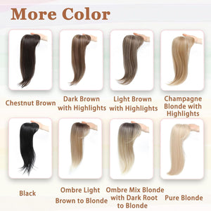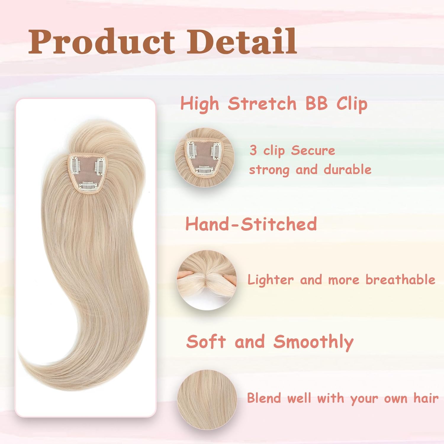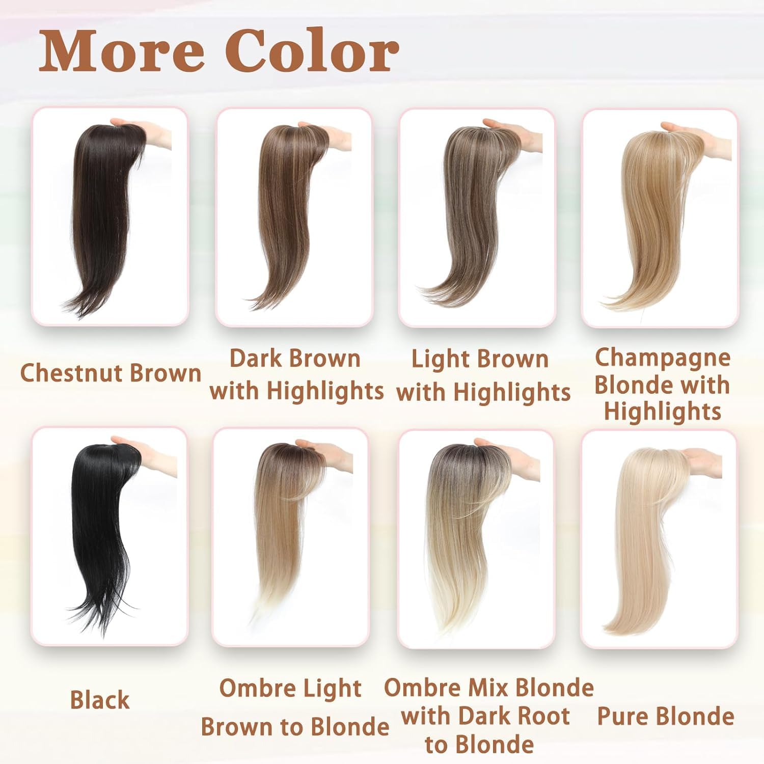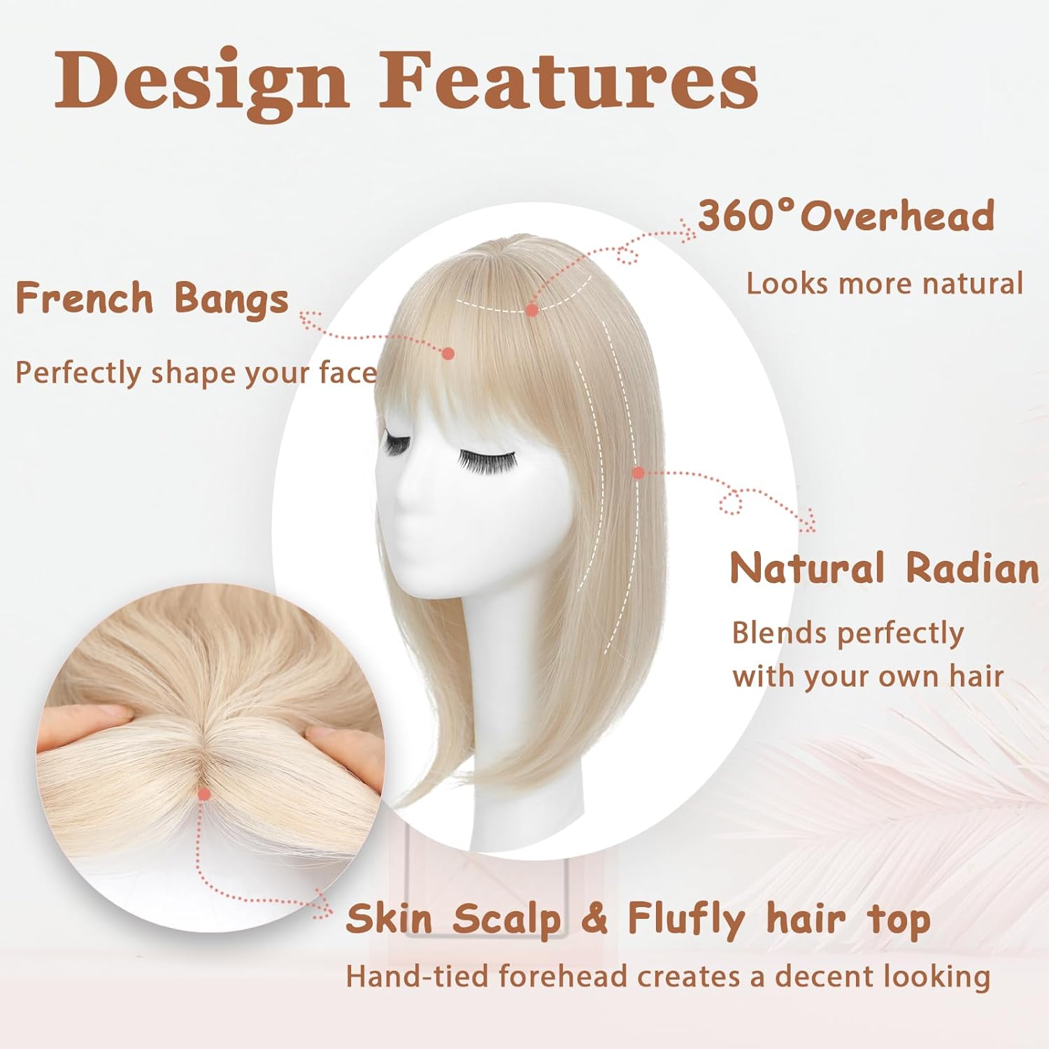 - Instant Volume and Coverage: This lightweight 100% human hair topper weighs 60 grams with a 2.8x3 inch base, providing instant fullness and coverage for thinning hair and shaping the face with natural-looking bangs.