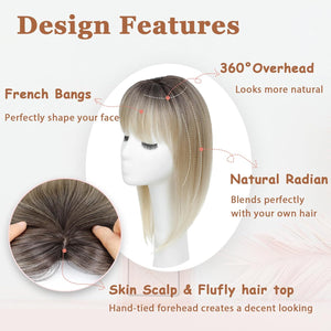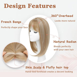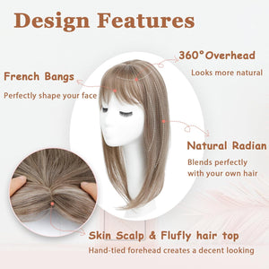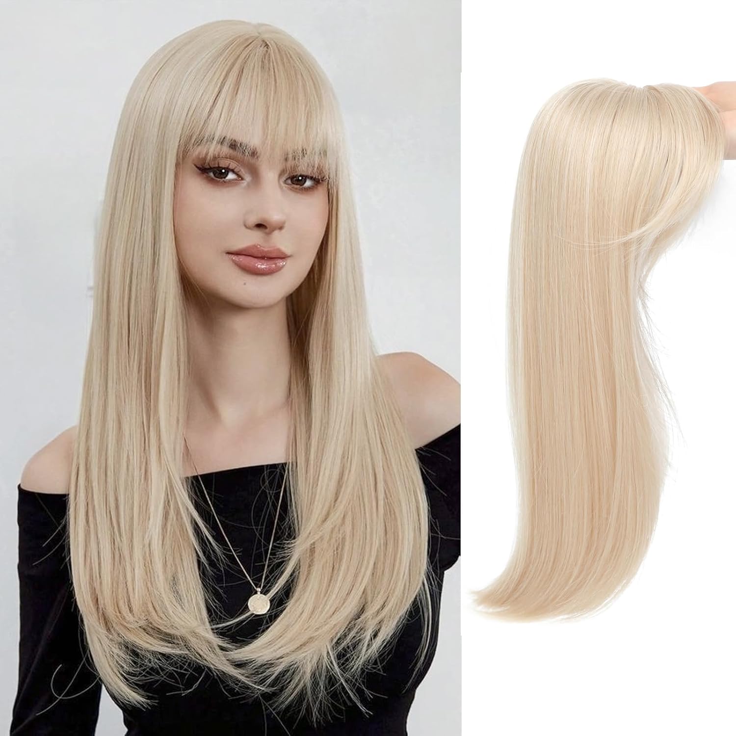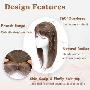 Hair Topper with Bangs Hair Clip 360° 3D Cover Hair Toppers Hair Pieces for Women with Thinning Hair