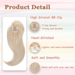 - Effortless Application: With three anti-slip clips, this topper can be securely attached to your crown in minutes, staying in place throughout daily activities without the need for glue, sewing, or a wig cap.