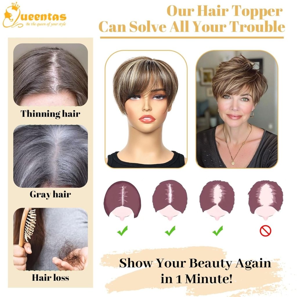 - Warm Tips: Our hair topper for thinning hair are made by hand.You can repair it as your requirements, cut the hair shorter or thinner base on your own needs. Photos are taken by real products, but due to the environment lights, display, etc. there may be slight color difference between product and image,Thanks for your understanding.