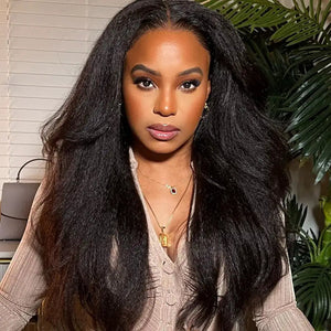 Expertly crafted with 100% human hair, our High Quality Kinky Straight Long Human Hair Wig is perfect for those seeking a natural, sleek look. Enjoy effortless styling and long-lasting durability with this high quality wig. Experience the benefits of a flawless, professional appearance.