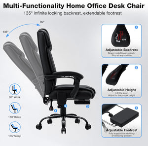 - RECLINER AND FOOTSTOOL DESIGN: The reclining office chair focuses on comfort with 90°-135° adjustable angle and retractable footrest to ensure that you can find the ideal seating position for ultimate comfort and relaxation in your office