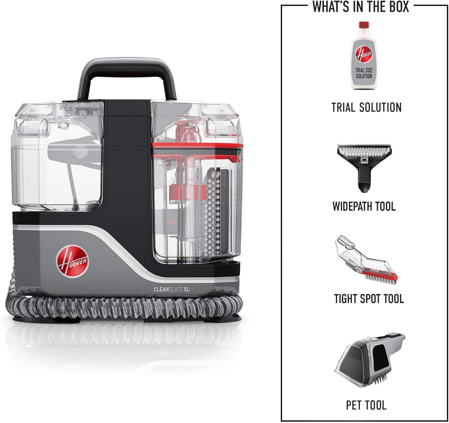 Hoover CleanSlate Plus Portable Carpet + Upholstery Spot Cleaner Machine, Powerful Suction with Versatile Tools, Pet Stain Remover, Car and Auto Detailer, Pair with Hoover Carpet Cleaner Solution