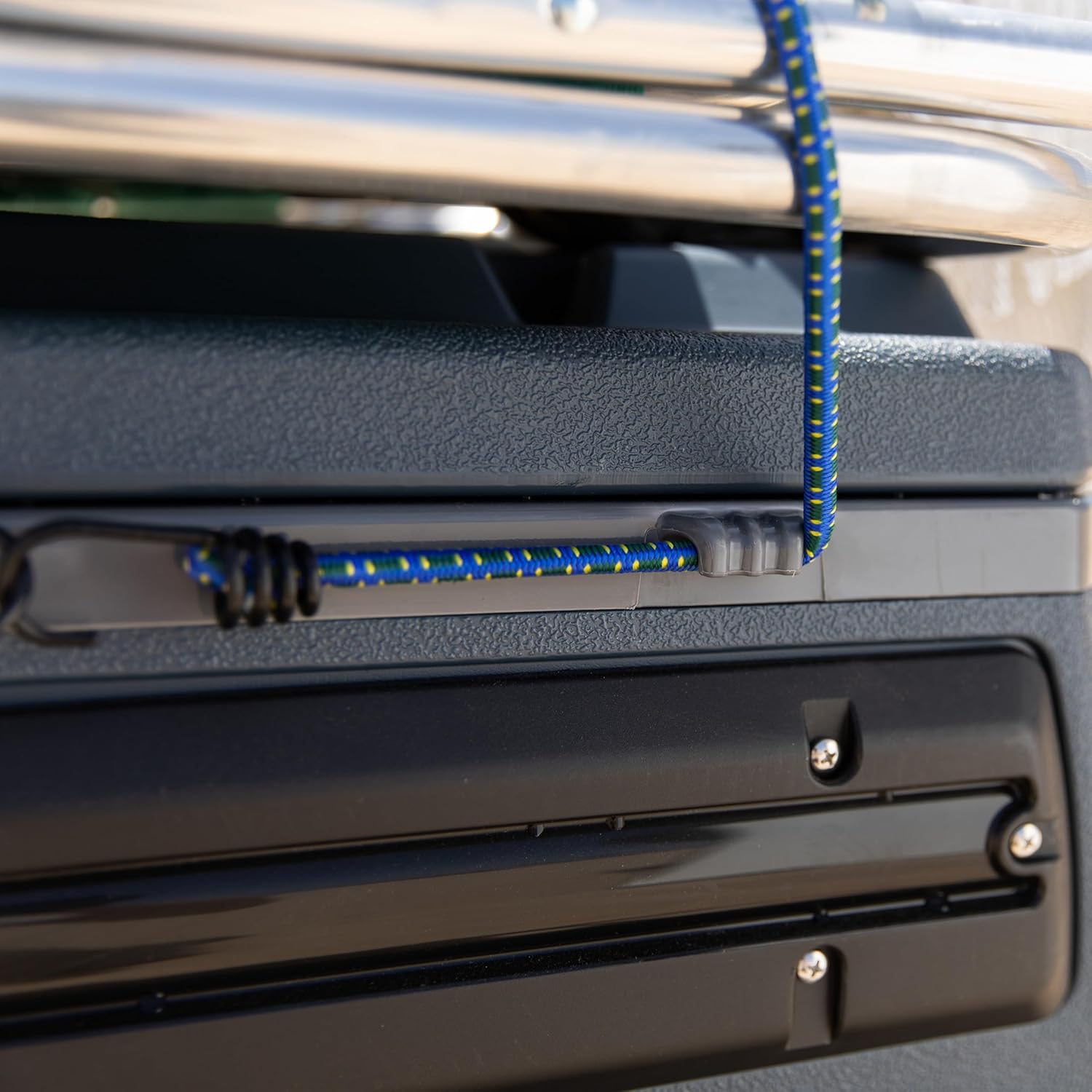 - Tie-down hooks (using bungee cords or rope, not included) give you more carry options, making it easy to haul things like towels, quad chairs or a surfboard to your destination