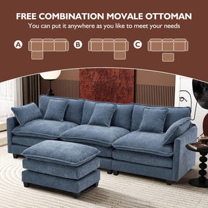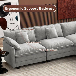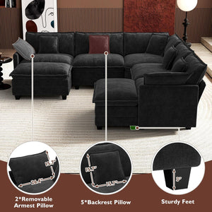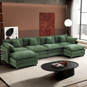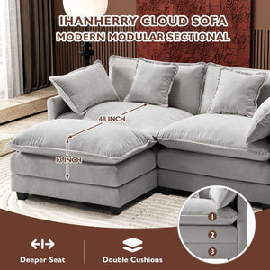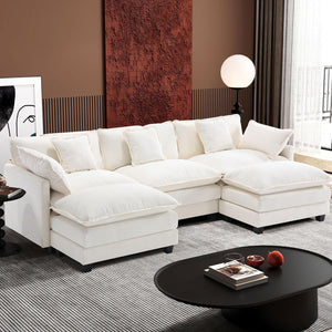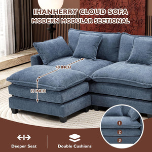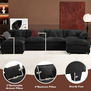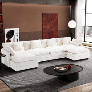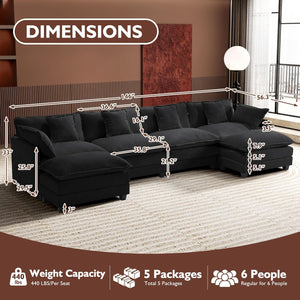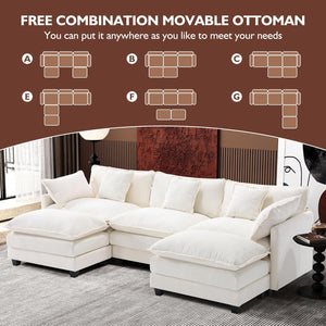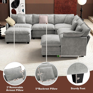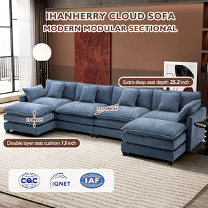Ihanherry 146" U-Shaped Modern Sofa Modular Sectional Cloud Couch with 2 Ottoman, 6-Seat Chenille Deep Seat Sofa with 6 Pillows for Living Room, Bedroom and Apartment, Grey