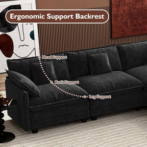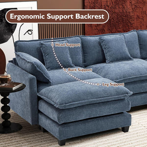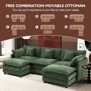 - 【Ergonomic Design】Ihanherry U-shaped couch is equipped with four backrest pillow, two removable armrest pillows and two ottomans, providing extra support for the back and waist. Each pillow feels like as soft as clouds. When you sit on the sofa, it can cling to your back and waist, giving you an extremely comfortable experience.