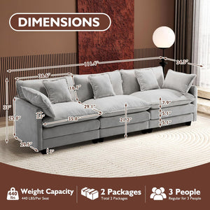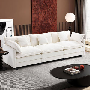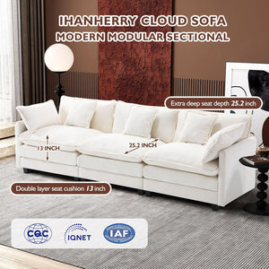 - 【Sturdy Couch】The frame of cloud sofa is made of high-quality solid wood, making it more durable and sturdy. Each sofa can withstand a maximum weight of 440 pounds, exceeding that of most sofas. With a seat depth of 25.2", it is suitable for most body types and various sitting postures.