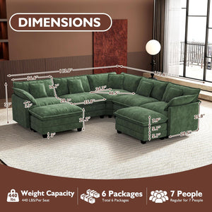- 【Five Boxes Packaging & Easy Assembly】Overall Size: 56.3"D*146"W*33"H. Ottoman Dimension: 22.8"W*37"D*21.2"H. We put all the parts in five boxes for easy transport and sometimes they arrive at different times. The package includes all numbered parts, tools, and clear instructions. It comes with necessary tools, so no additional equipment is required. You can install it in 30 minutes by using the included detailed instructions. If you have any problem with the receiving, please contact us promptly