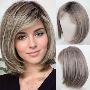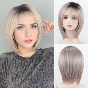 Layered Blonde Bob Wigs for White Women with Bangs Straight Short Hair Wig human hair wigs