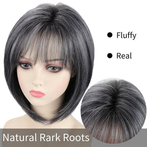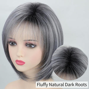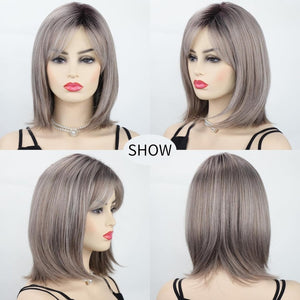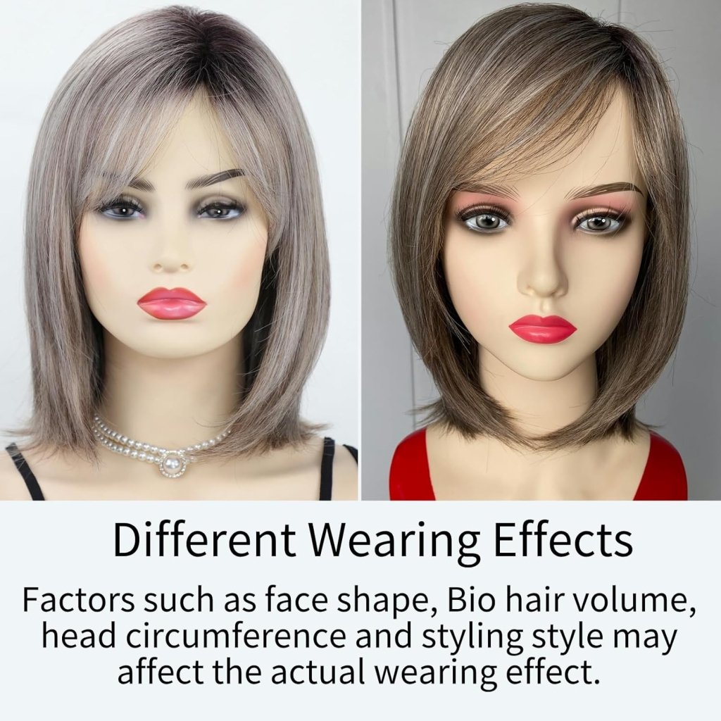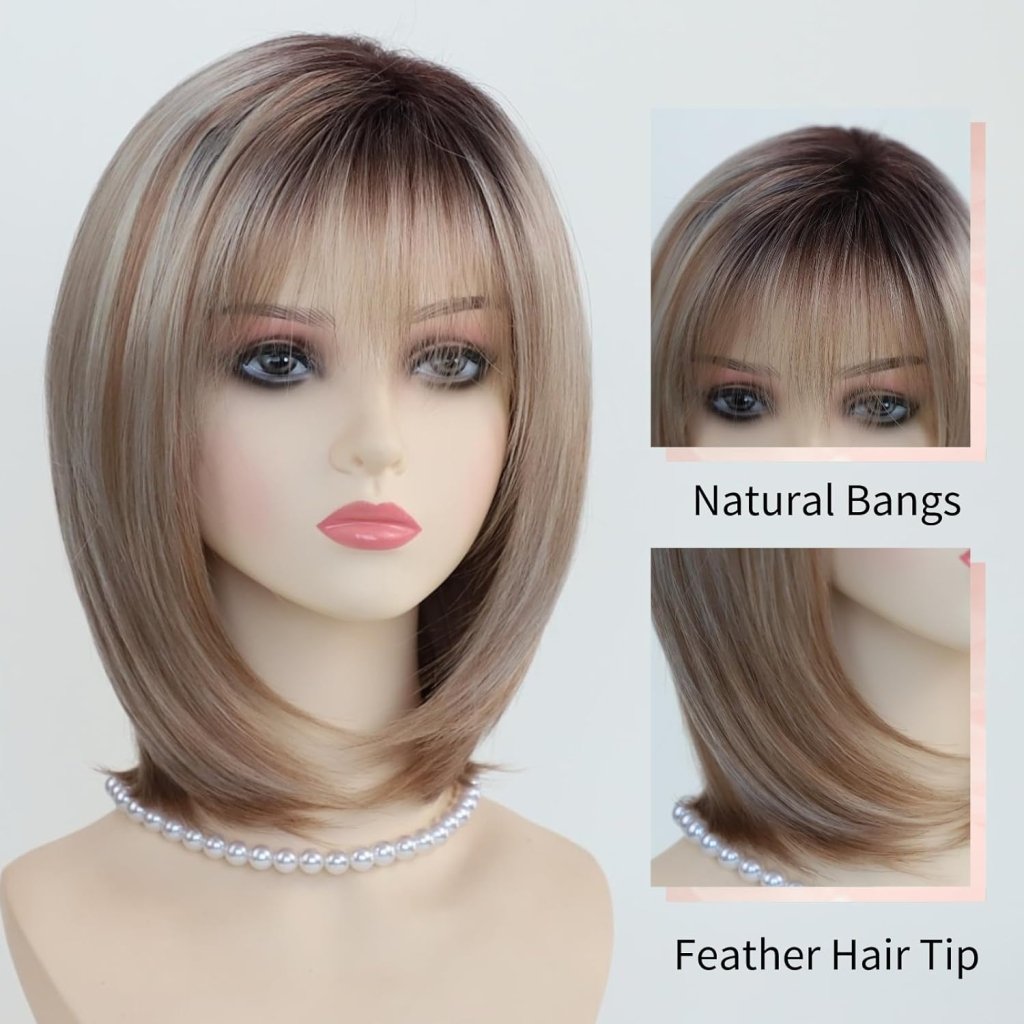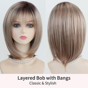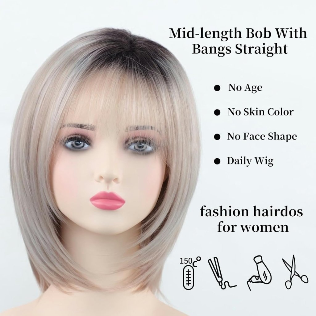 - This wig for white women has a gorgeous hair color with natural dark roots that flatter your own hair, and a mix of blonde highlights and lowlights that are both beautiful and capable, you'll love this blonde bob wig with bangs.