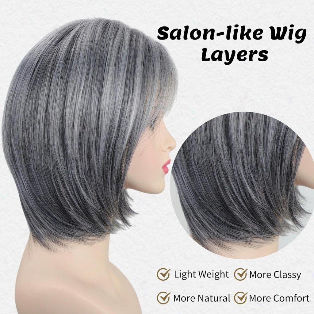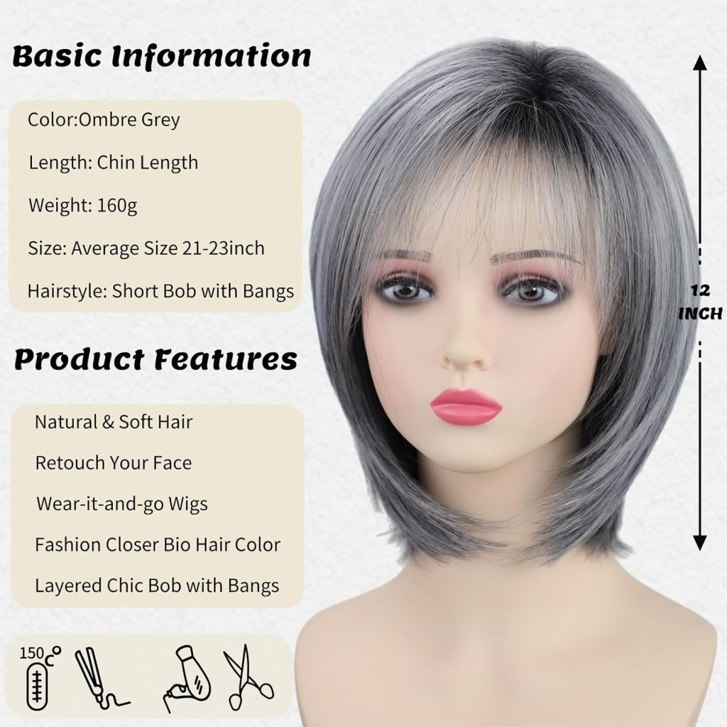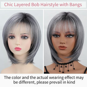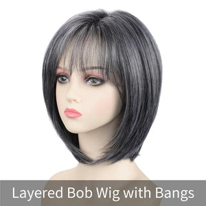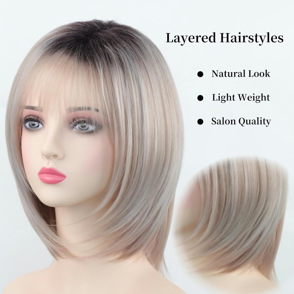 - If you want an everyday party wig, this blonde bangs bob wig is a good choice, simple layered short hair with stylish blonde teased hair color, natural and wearable, you will get a lot of compliments on this bob wig.