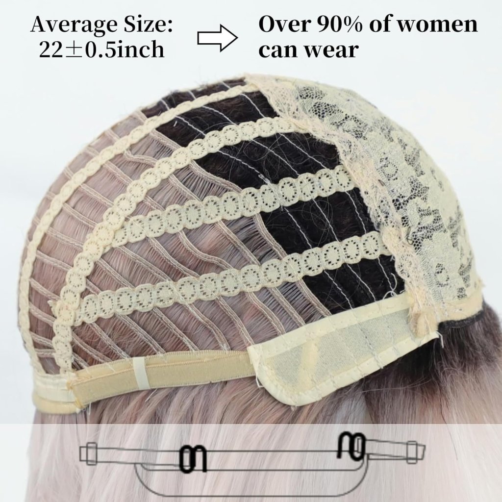 - The medium length blonde bob wig has average size22±0.5inch, two elastic straps can be adjusted the tightness between 8 gears to fit most women head size, breathable inner net also is soft and comfort