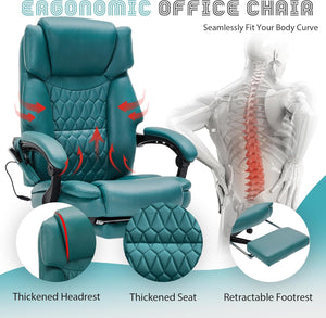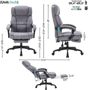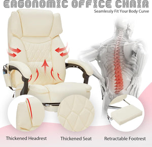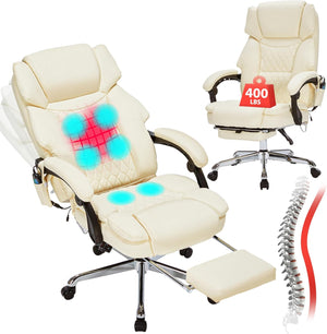 Massage Office Chair with Foot Rest 6 Points Vibration and Heat Home Office Desk Chairs for Heavy People 400lbs Reclining Managerial Chairs Ergonomic Executive Chair (Cream)
