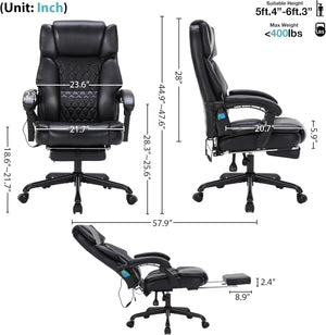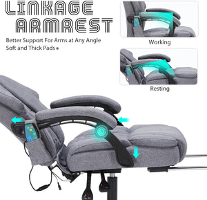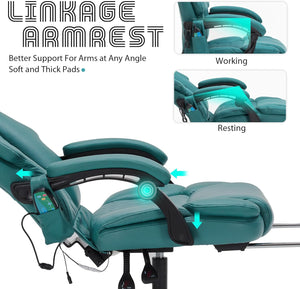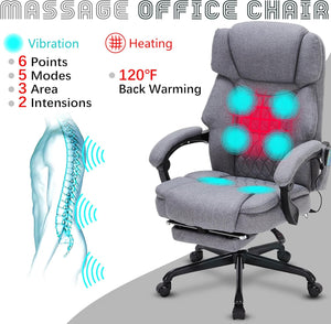 - [MASSAGE AND HEAT] This massage office chair has a 6-point massage system offering 5 massage modes across 3 targeted areas (back,lumbar,seat) and 2 intensity levels. High frequency vibrations penetrate into your deep muscles, relieve fatigue. Also Enjoy the comforting warmth of the back heating function, maintaining a cozy 120°F.
