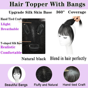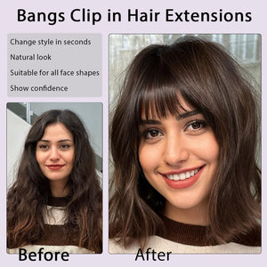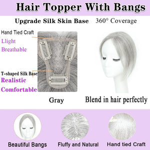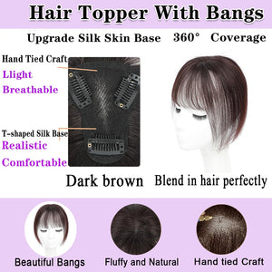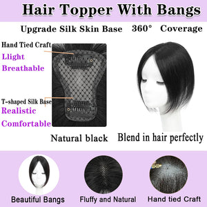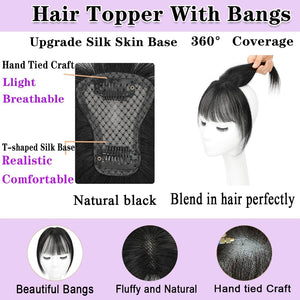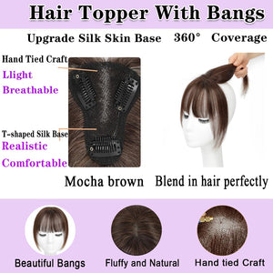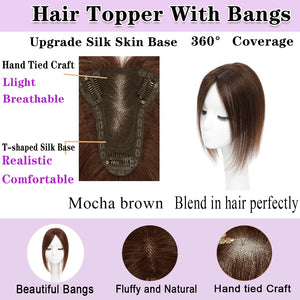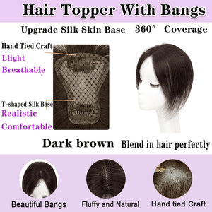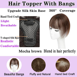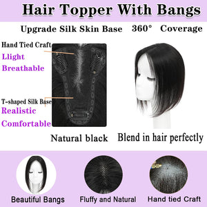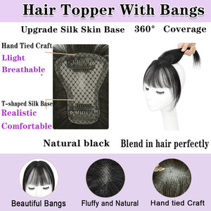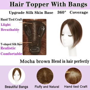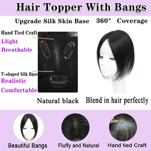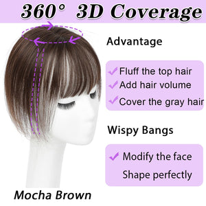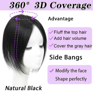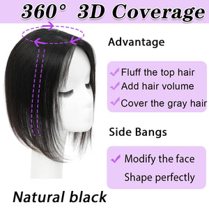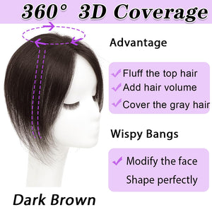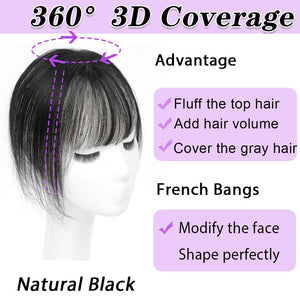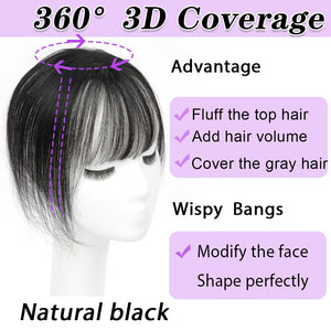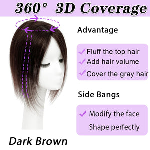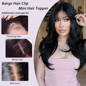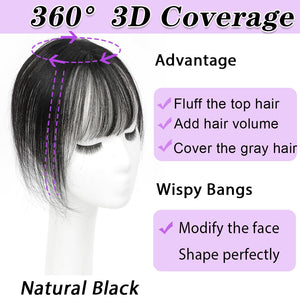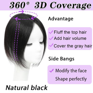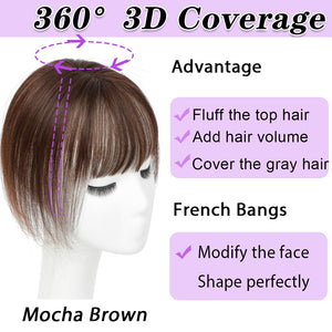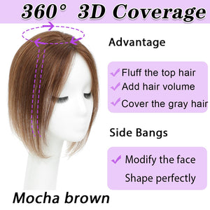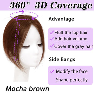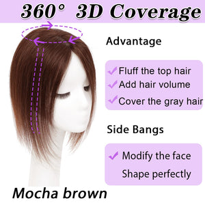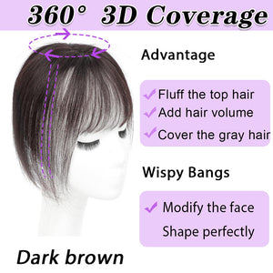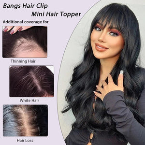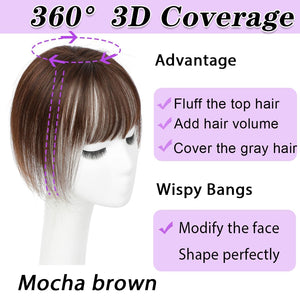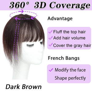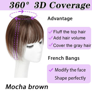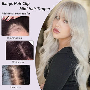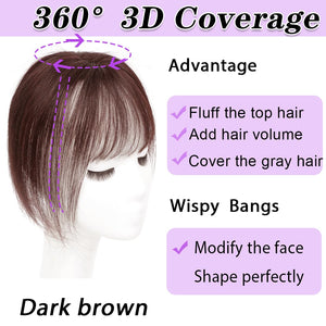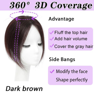 Bangs Toppers for Women 100% Human Hair Piece 360° 3D Cover Fake Clip