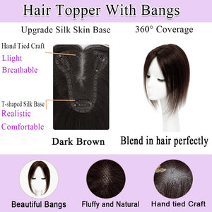 - Try and Enjoy the Hair Topper with Bangs: Our hair toppers with bangs will help you to change a new curtain bangs hairstyle in a minute, your new look will come instantly, faux bangs will add new experience and happy mood to you, and you can cut and repair it slightly as you like also.