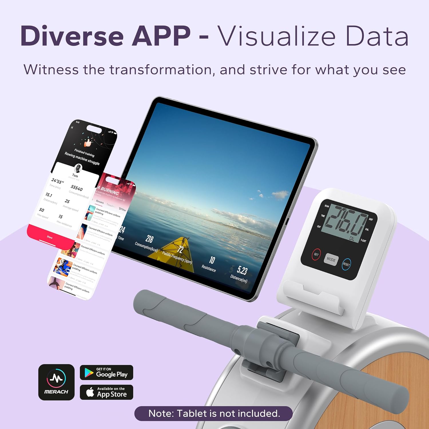 - MERACH APP: Our App offers various courses and programmed exercises for you, Taking the courses can bring your rowing experience to the next level. Also compatible with KINOMAP APP, immerse yourself in splash, and feel nature even while rowing at home.