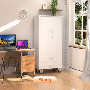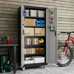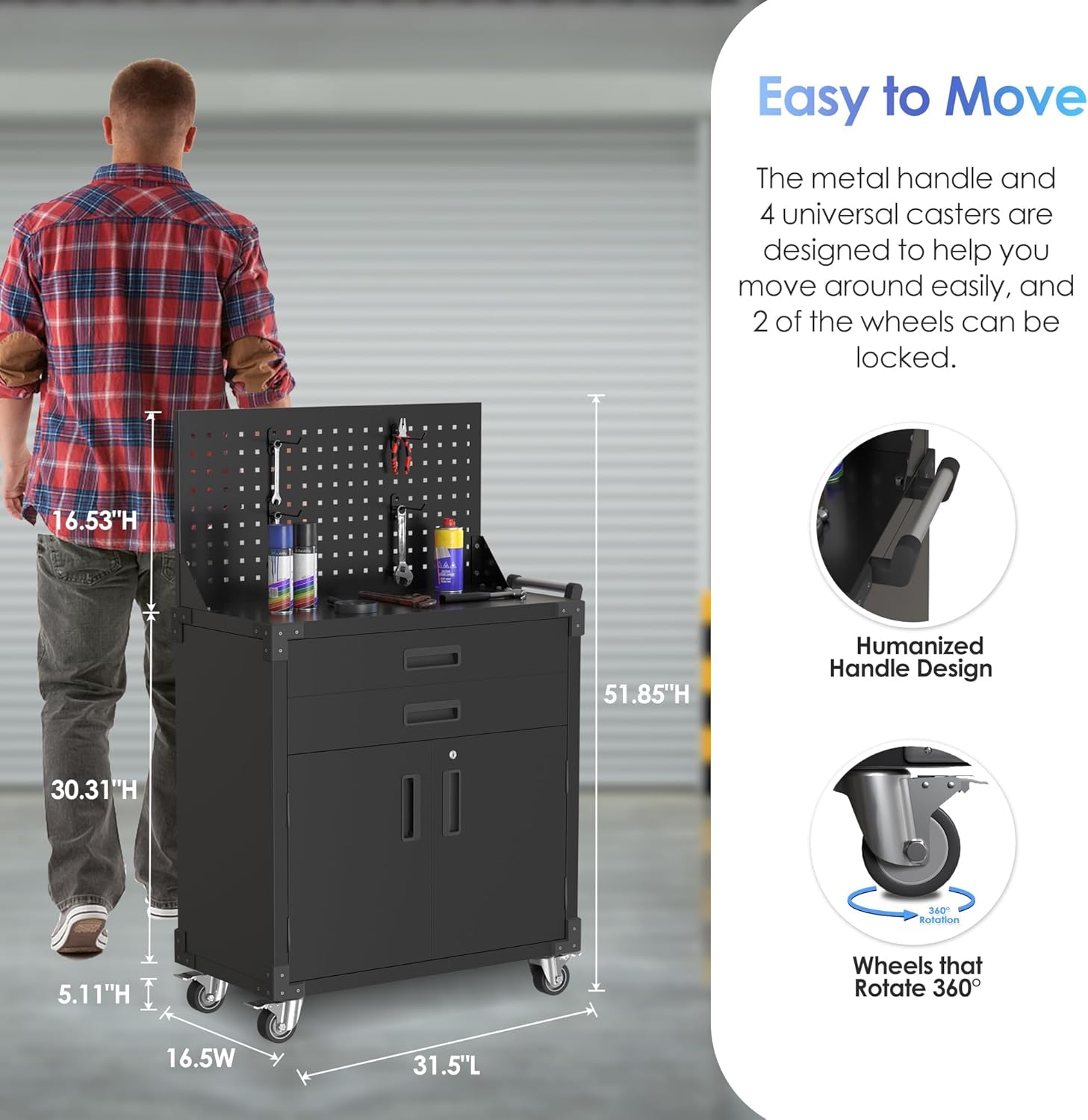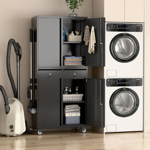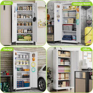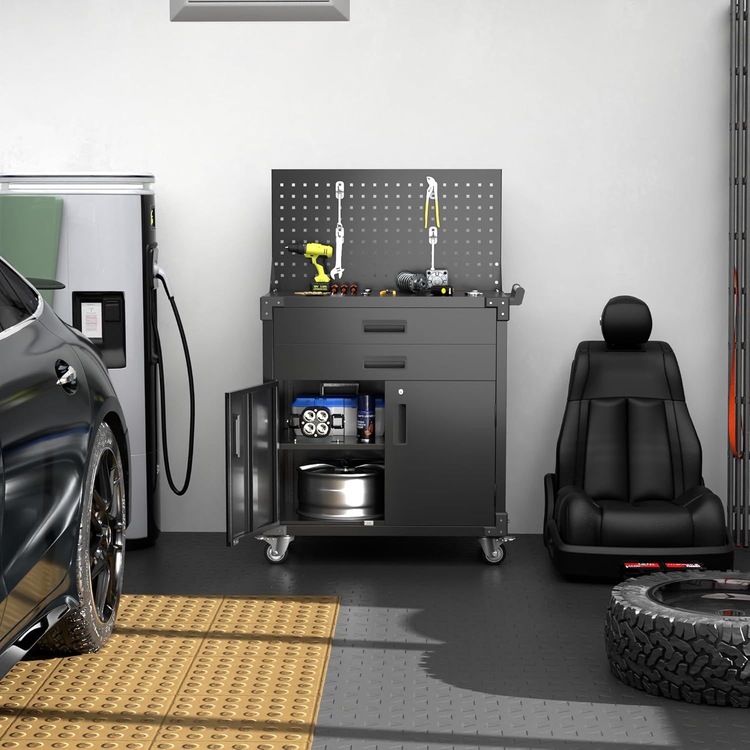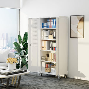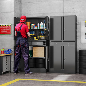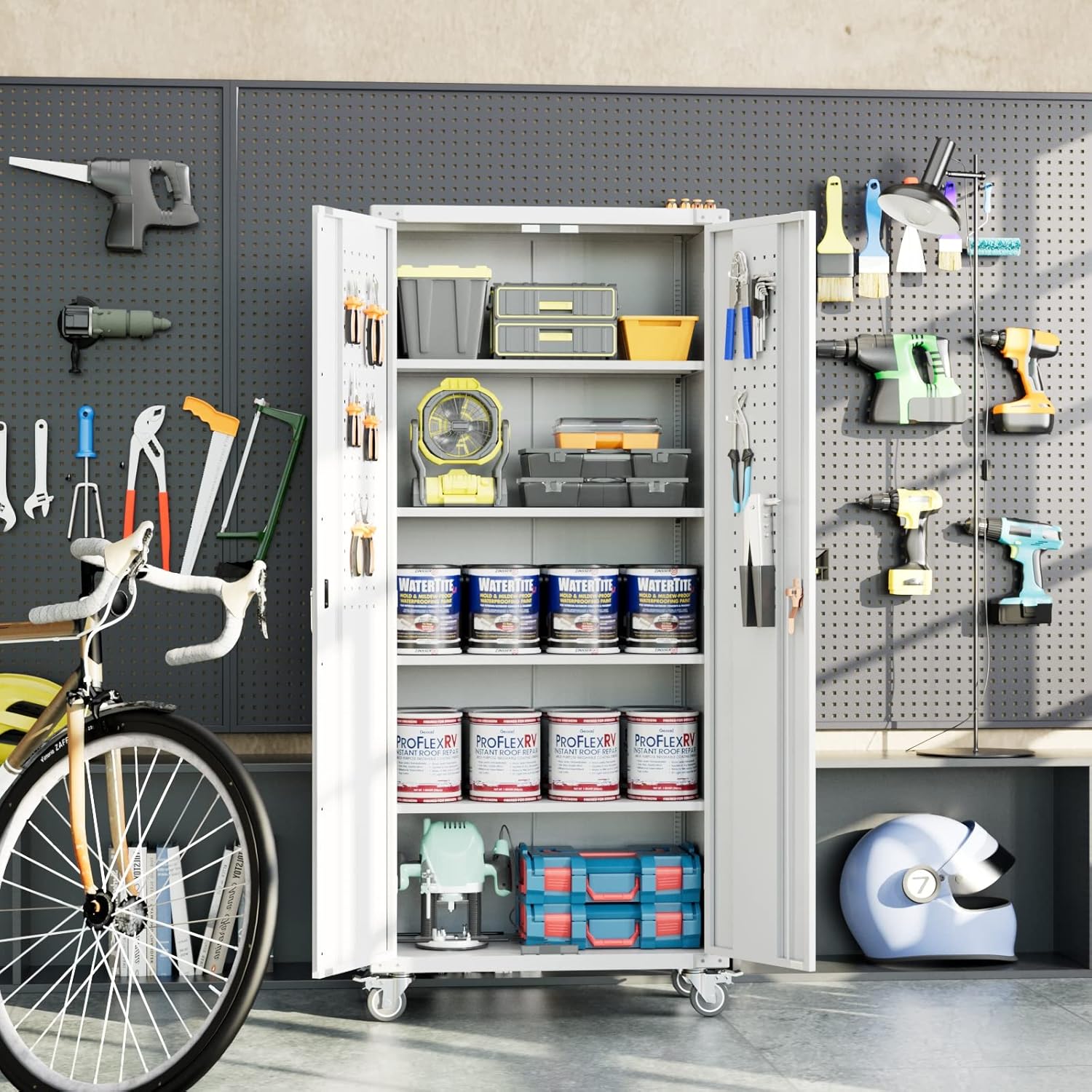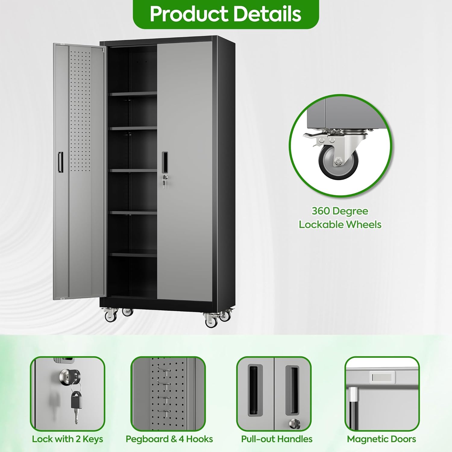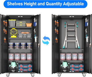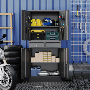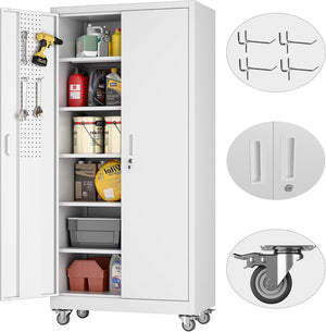 - New Upgrade:Metal Cabinet has lots of room to organize your belongings.In order to meet customer storage requirements, the newly upgraded metal cabinet with Pegboard(Including 4 hooks) for storing tools and other items, fully utilizing space
