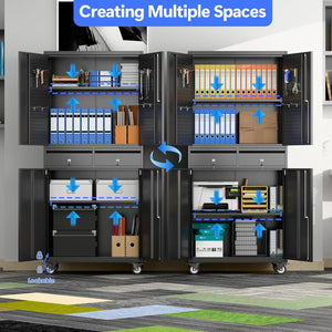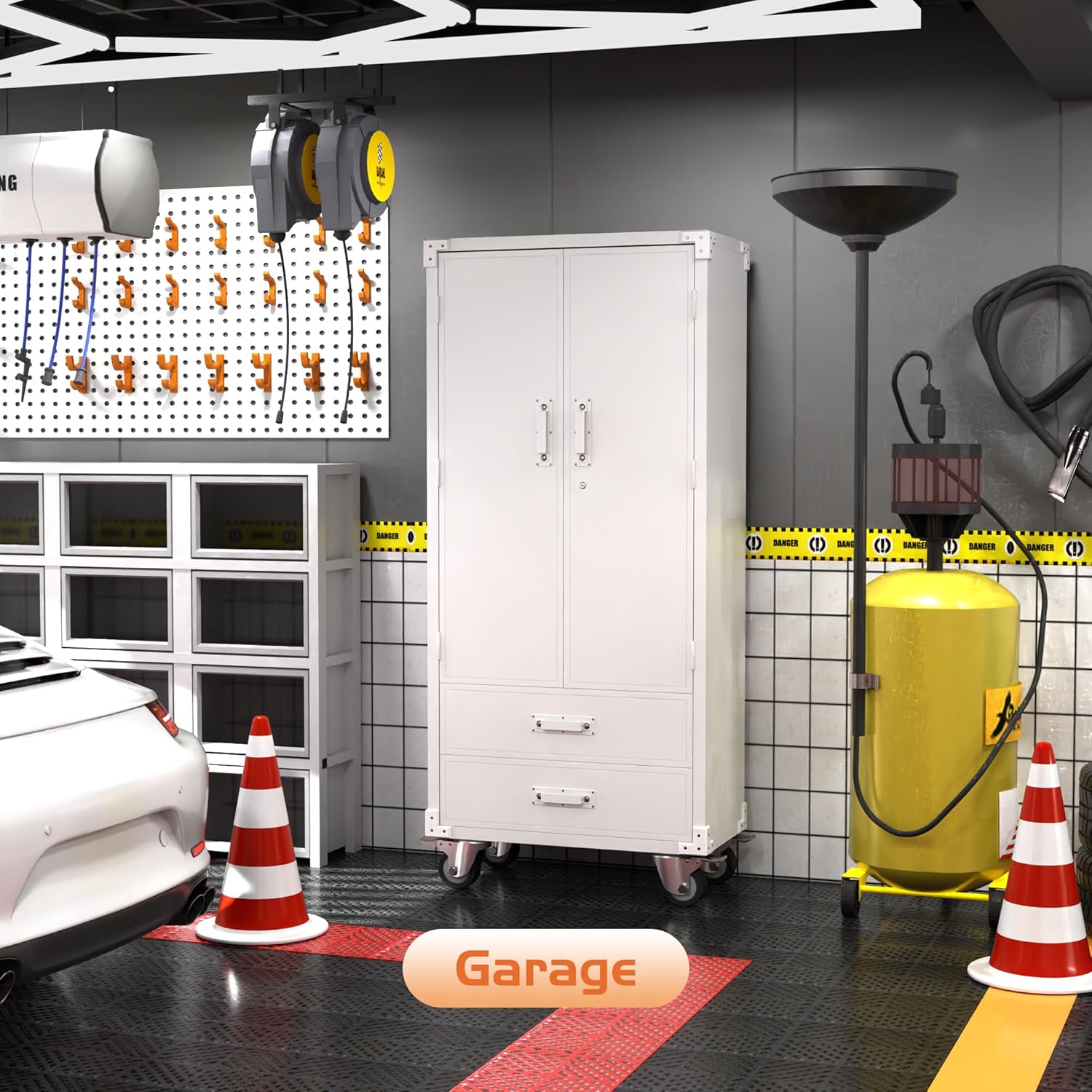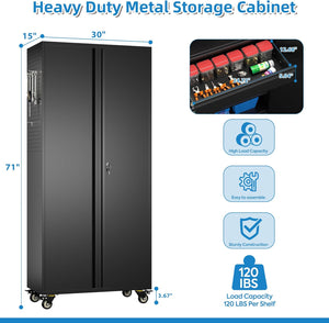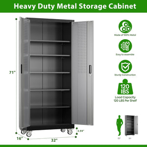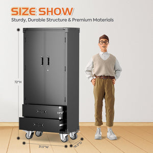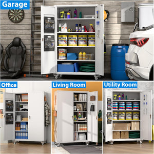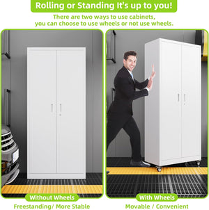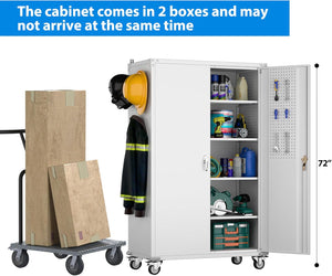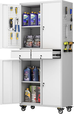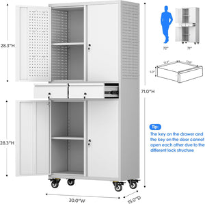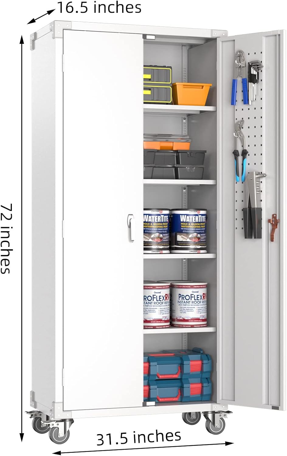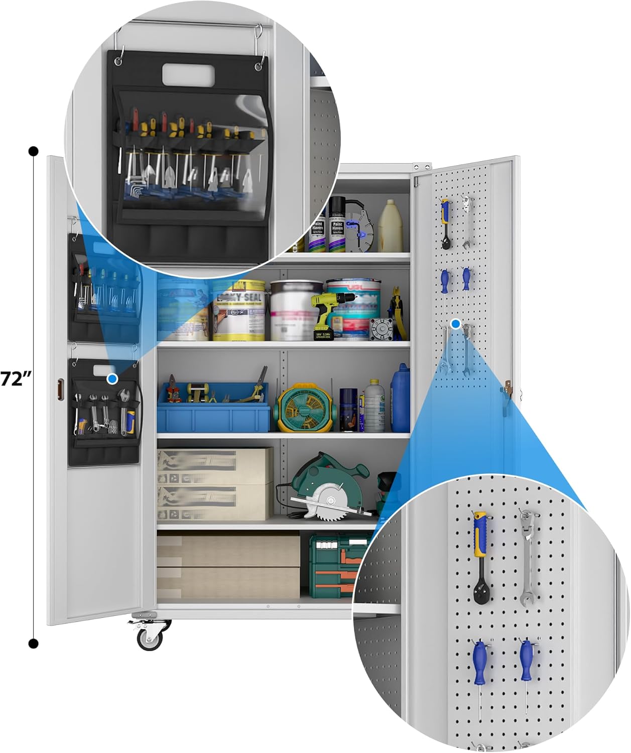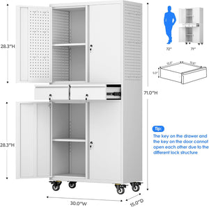 - Larger and Deeper Sizes:Metal Garage Storage Cabinet with Wheels and Pegboard 71'' x 34'' x 18'',The widened and deepened design allows you to obtain larger storage space.