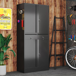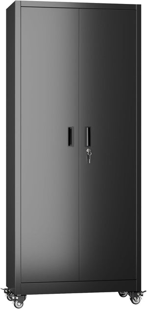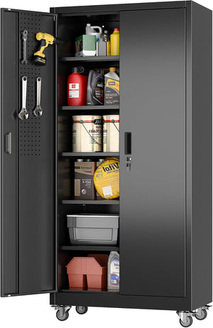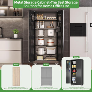 Metal Storage Cabinet with Pegboard 71'' x 34'' x 18'',Lockable Steel Storage Cabinet with 5 Adjustable Shelves and Door for Garage, Office, Kitchen, Assembly Required(Black)