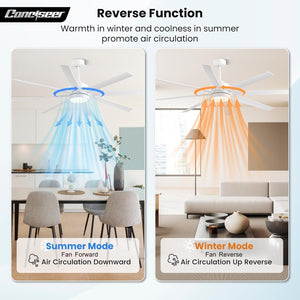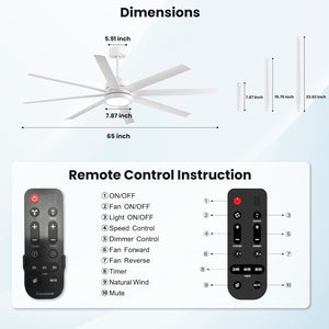 - Patent Design Remote Control: The ceiling fan is equipped with a beautiful remote control, and both the light and fan can be controlled separately. With the remote control, you can adjust wind speeds in 6 gears, timer off, one click mute, simulate natural wind, and reverse the rotation of the fan, providing you with a comfortable user experience