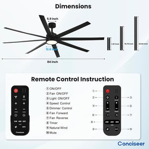 - Modern Ceiling Fan with Light: 72 inch Conciseer modern ceiling fan, combining classic retro design with modern functionality, is equipped with 8 fan blades, suitable for living rooms, dining rooms, kitchens, libraries, cafes, factories, etc