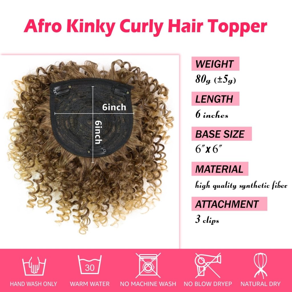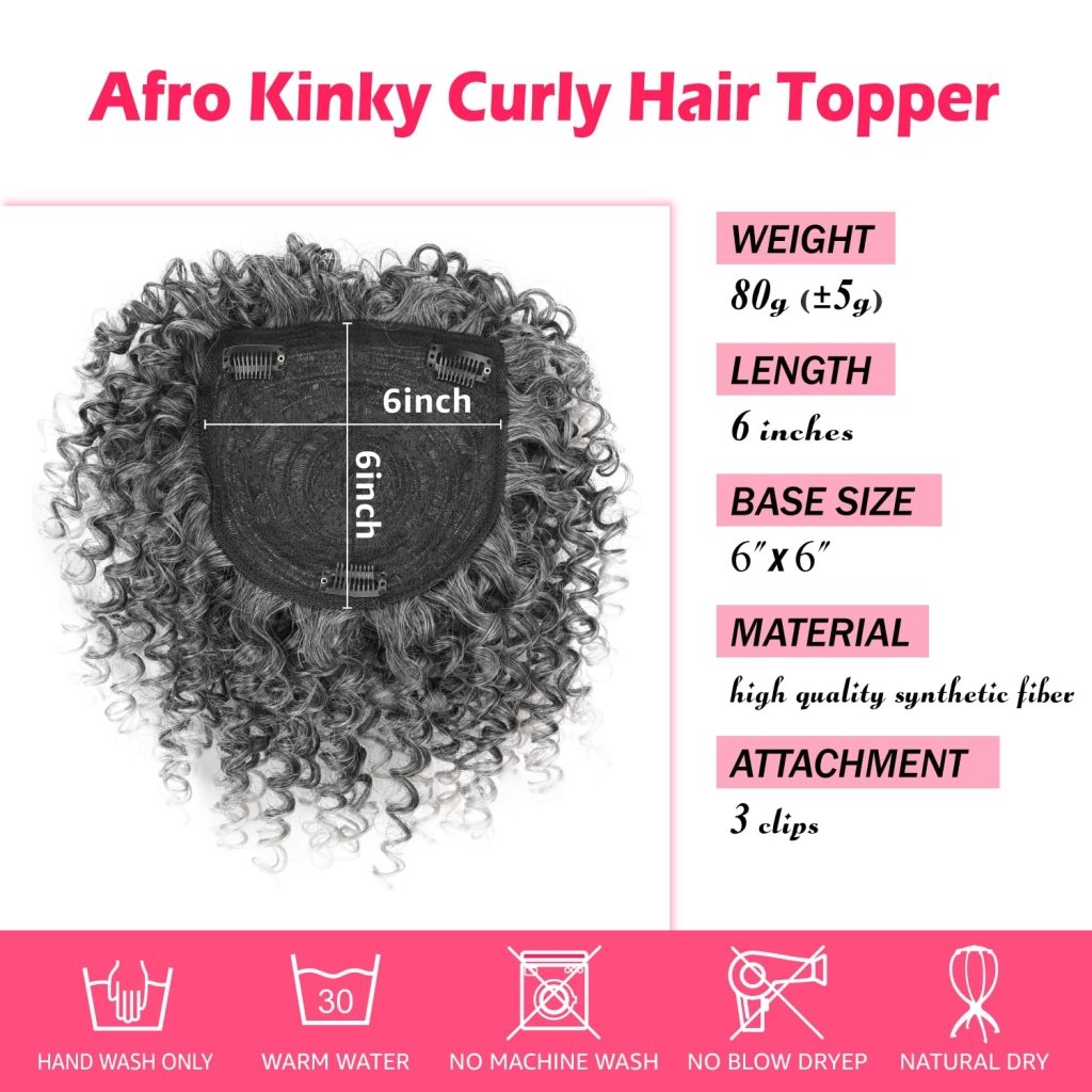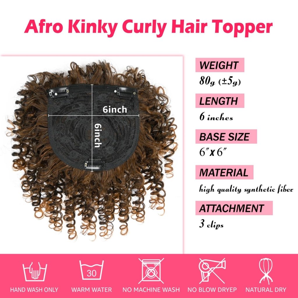 - 💖Versatile and Natural Look: Whether you're looking to add volume, cover thinning areas, or simply change up your hairstyle, our Afro Kinky Curly Hair Topper provides a versatile solution. Enjoy a natural-looking appearance that complements your unique style.