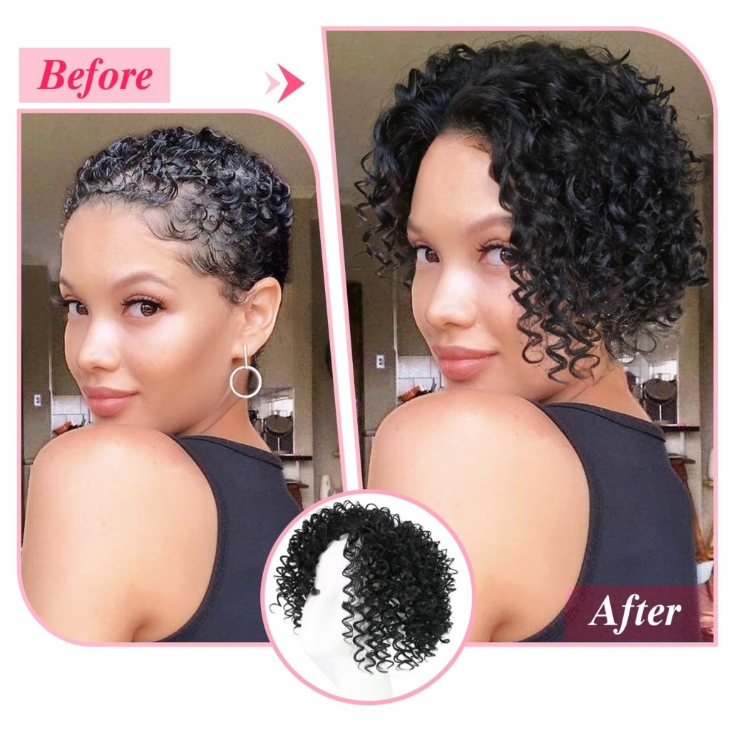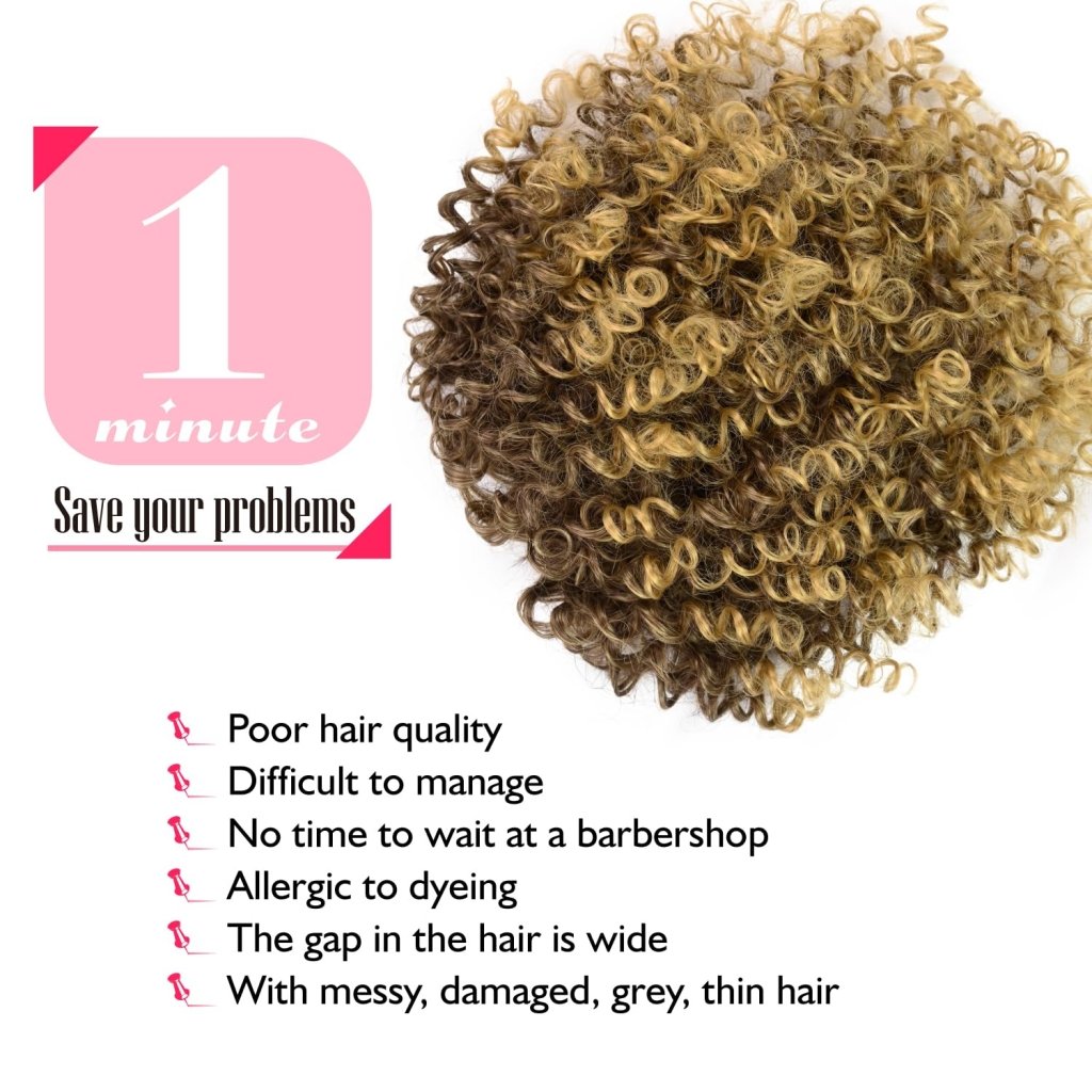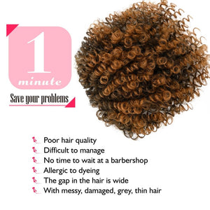 Enhance your natural beauty with our Natural Afro Kinky Curly Short Hair Toppers. Designed for both men and women dealing with thinning hair, these clip-in human hair wiglets offer instant volume and style. The natural afro kinky curly texture ensures a seamless blend with your own hair, creating a realistic and effortlessly chic appearance.