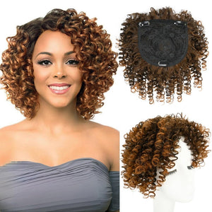 Natural Afro Kinky Curly Short Hair Toppers with Bangs Black Clip in human hair Wiglets Hair Pieces