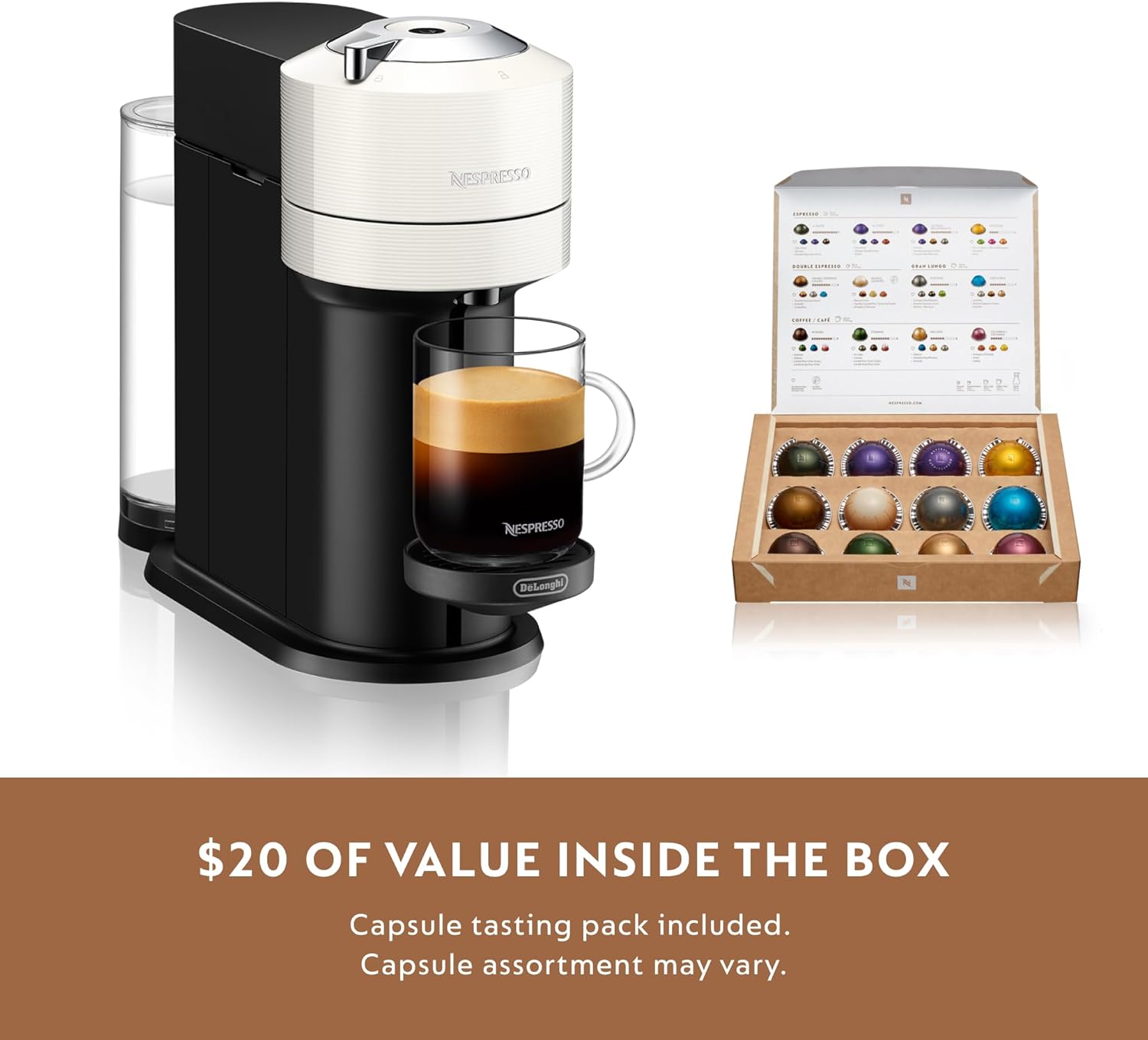 - COMPLIMENTARY GIFT: Each machine includes a complimentary starter set of Nespresso capsules (capsule assortment may vary from picture)