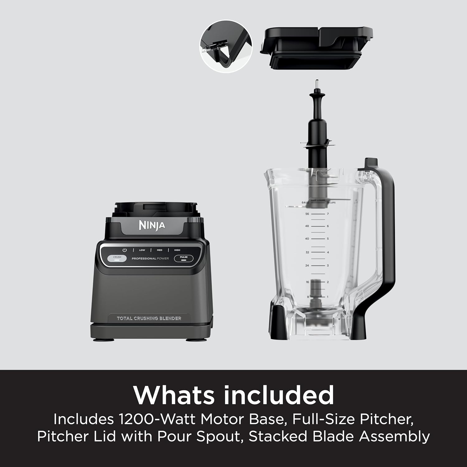 Ninja BL660 Professional Compact Smoothie & Food Processing Blender, 1100-Watts, 3 Functions -for Frozen Drinks, Smoothies, Sauces, & More, 72-oz.* Pitcher, (2) 16-oz. To-Go Cups & Spout Lids, Gray