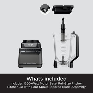 Included Components | (2) 16 oz. Nutri Ninja Cups, (2) To-Go Lids, 1100-Watt Motor Base, 72 oz. Total Crushing Pitcher with Lid, Inspiration Guide, Pro Extractor Blades Assembly |