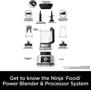 Ninja Blender & Food Processor Combo, Foodi Power Blender System for Smoothies, Bowls, Spreads & Shakes, 6 Functions, 72-oz Pitcher, To-Go Cups, Silver, SS401