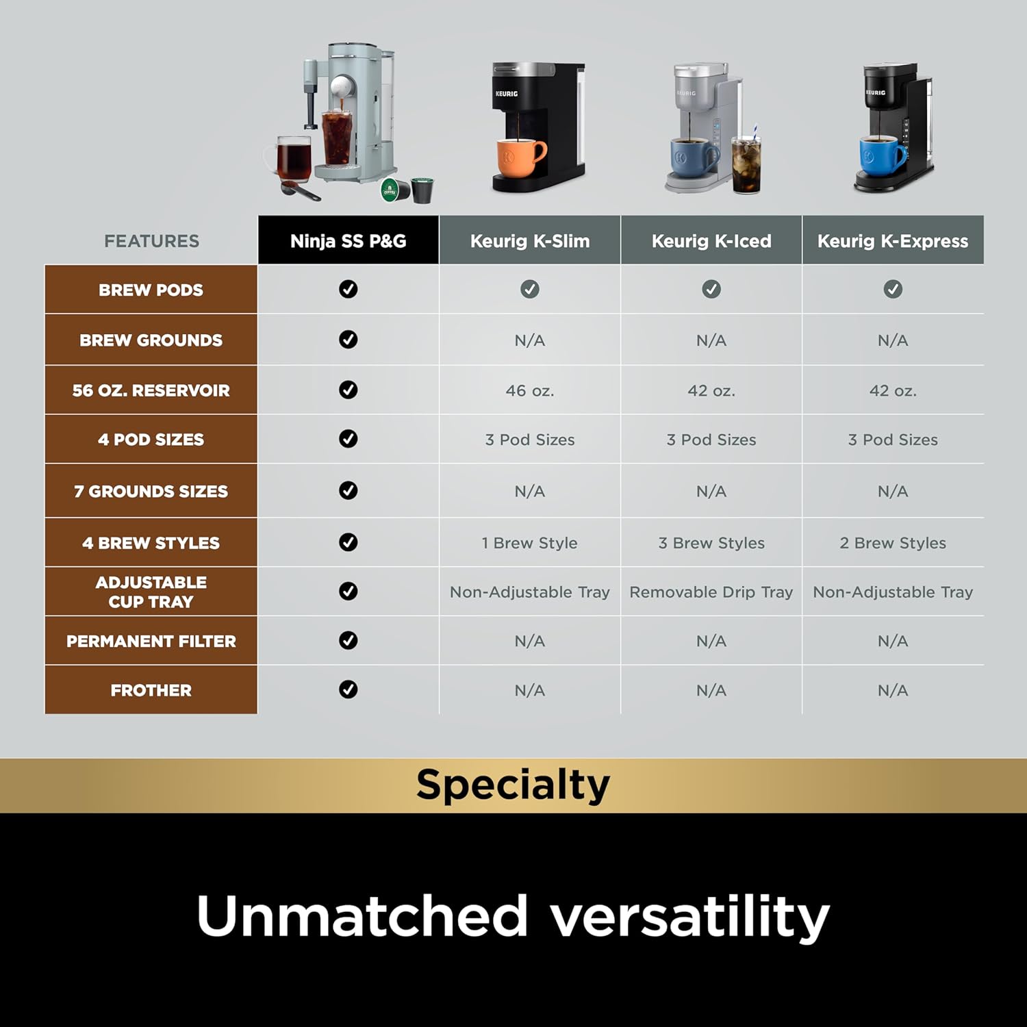 Ninja | Coffee Maker | Single Serve |Brew with Coffee Pods & Grounds| Compatible with K-Cup Coffee Pods | 4 Brew Styles, up to 24oz Cup Sizes & 56oz Removable Reservoir | Black | PB051