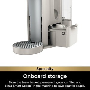 - COMPACT DESIGN AND STORAGE: Sleek, compact design takes up little countertop space, with a storage drawer for the brew basket or permanent filter when not in use.