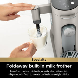 - BUILT-IN, FOLD-AWAY FROTHER: Turns hot or cold milk/milk alternative into silky-smooth froth. Removable for easy cleaning.