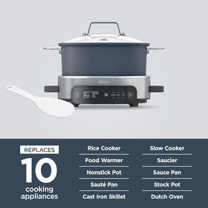Ninja MC1001 Foodi PossibleCooker PRO 8.5 Quart Multi-Cooker, with 8-in-1 Slow Cooker, Dutch Oven, Steamer, Glass Lid Integrated Spoon, Nonstick, Oven Safe Pot to 500°F, Sea Salt Gray