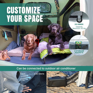 - 【Smart Features for Ultimate Convenience】Designed with user comfort in mind, Niphean camping tent for truck bed features a dedicated vent for truck air conditioning, side windows, and a panoramic skylight for ventilation and stargazing. Inside, there are 8 O-rings and 2 large storage pockets, perfect for hanging LED lights, projectors, and other camping essentials, allowing you to customize your own cozy mobile nest.