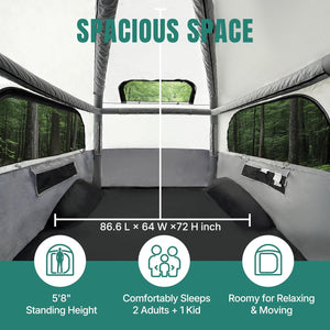 - 【Spacious & Versatile 】Designed to fit most 5.5ft–8ft truck bed, Niphean truck tent can comfortably accommodate at least 2 adults + 1 child. With an impressive 72-inch peak height, even truck campers up to 5'8" can stand upright inside. Niphean pickup truck tent is not just for truck beds—set it up on the ground for a flexible mobile shelter wherever adventure calls.