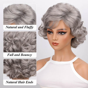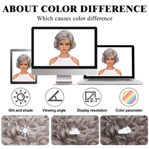 Old woman wig Grandma wig Grey white synthetic hair wig