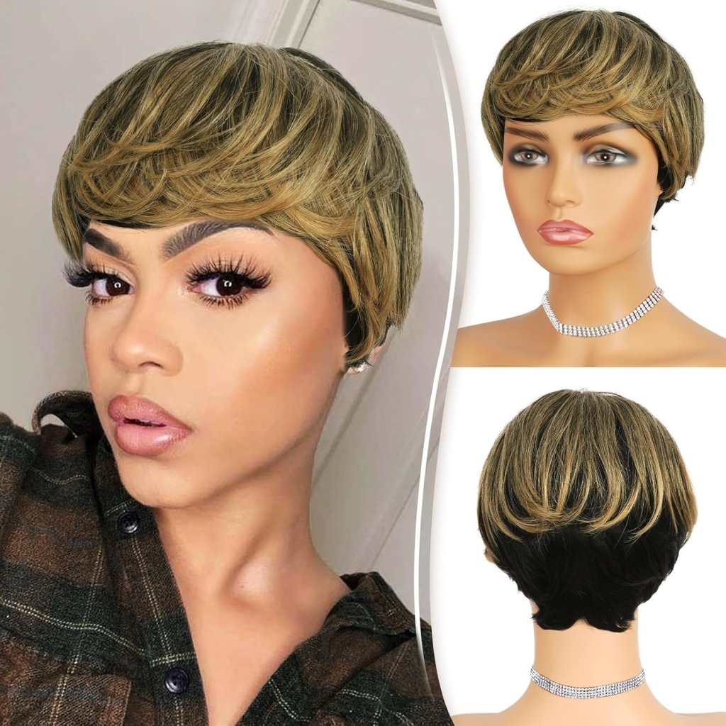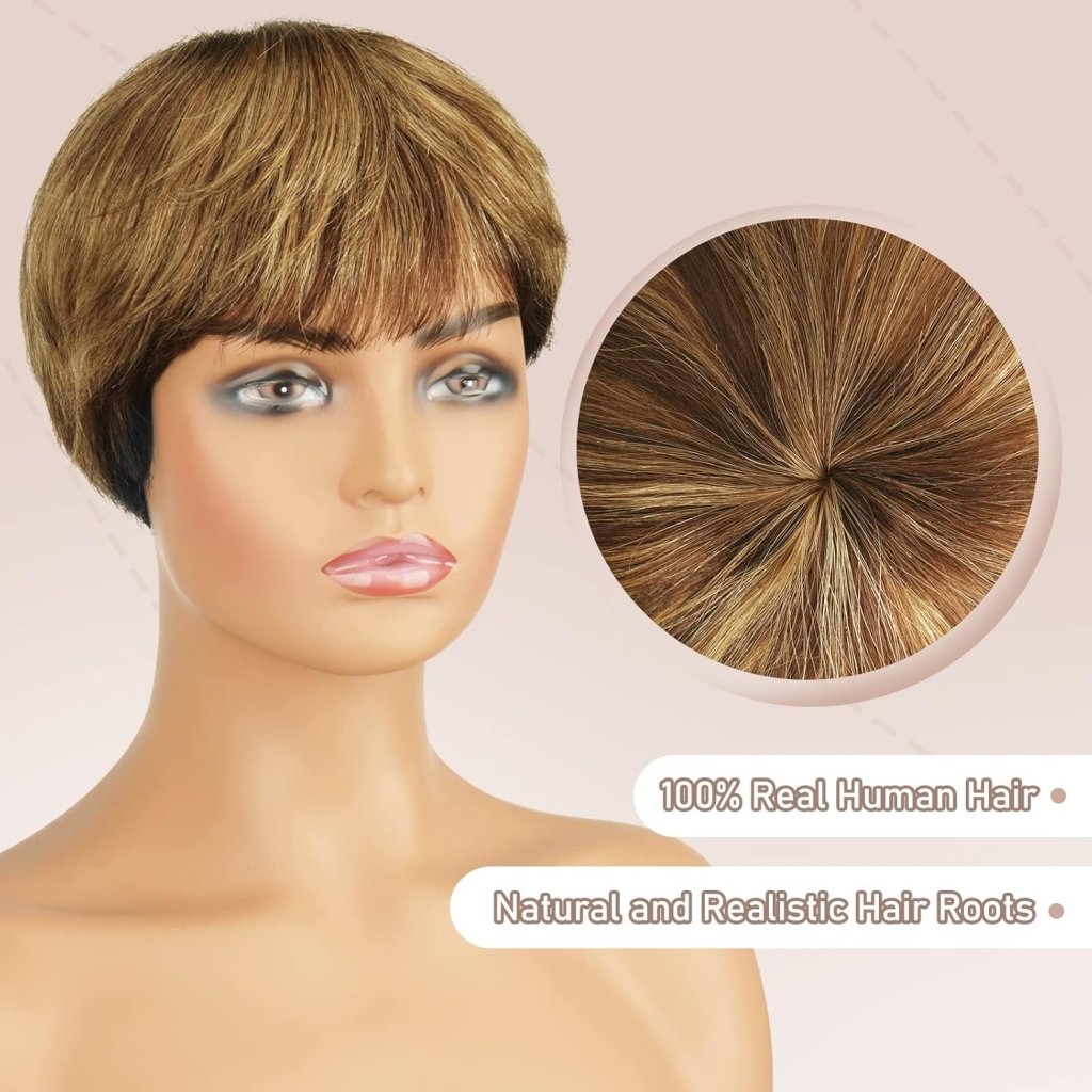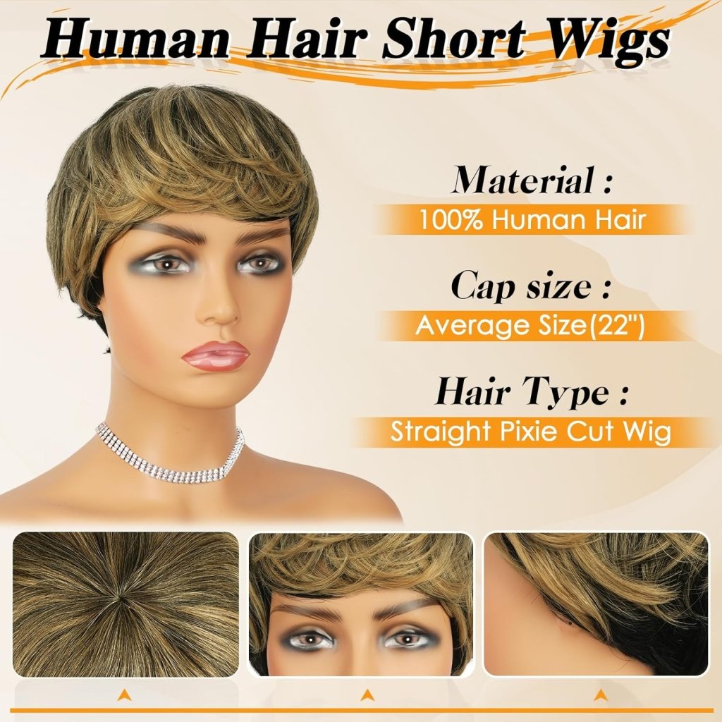 - Guaranteed High Quality: wigstrends short human hair pixie wigs are made of 100% real human hair, 100g, soft, full and fluffy LAYED hair with bangs. Human short wigs with a breathable cap inside (average size is about ±22 inch), which is comfortable to wear. 2 combs and adjustable straps are for better tightness adjustment.