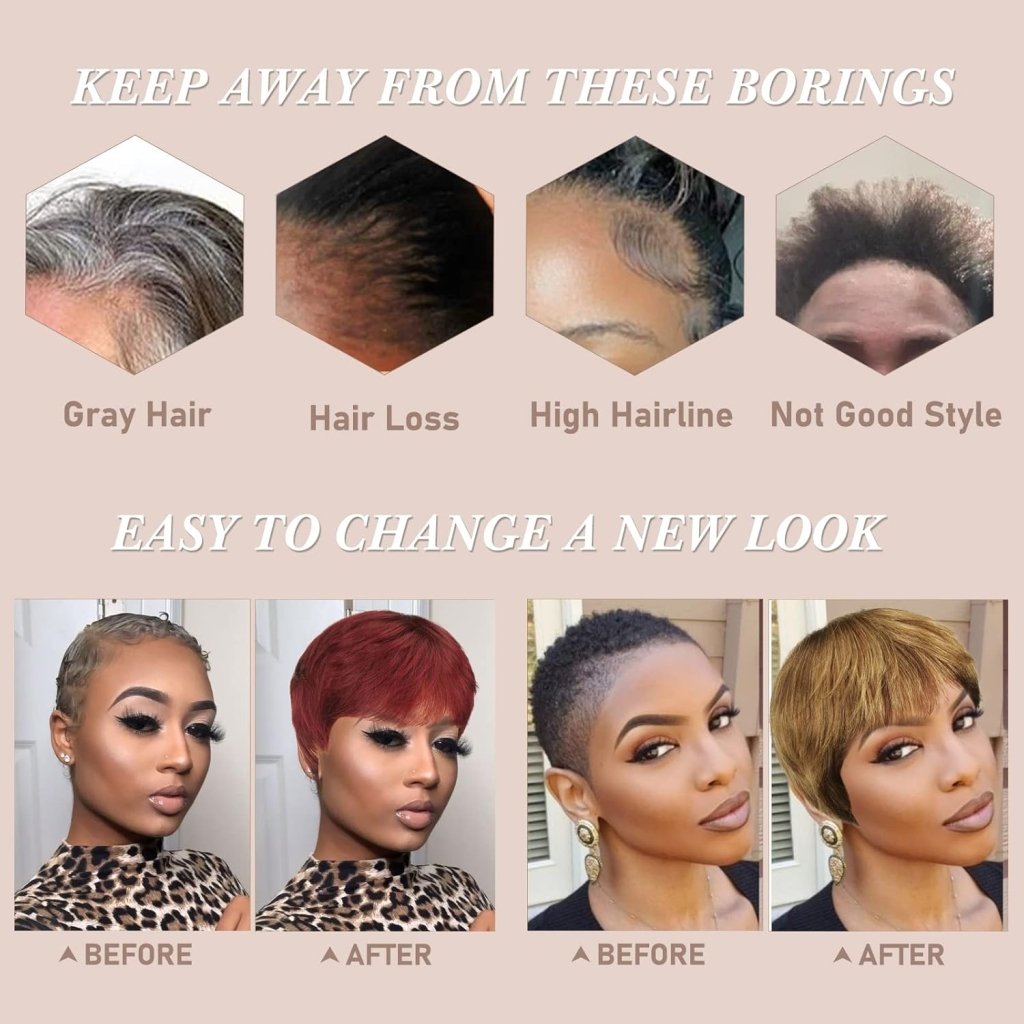 - 4 Kinds of Stylish Short Wigs: wigstrends provides 4 different styles of pixie cut human wigs for black women to choose from, each style all suits most different face shapes. Besides, these short human hair wigs are easy to wear and style, both men and women are available for it.