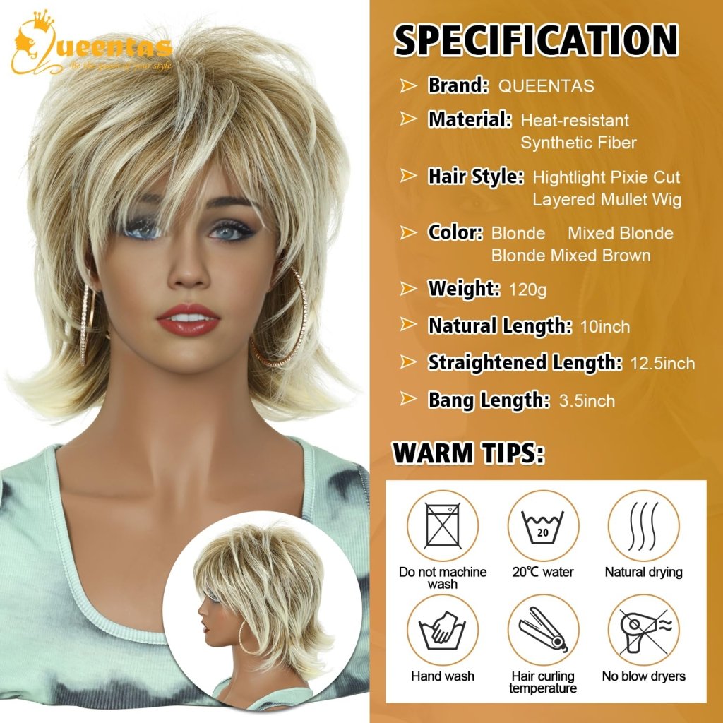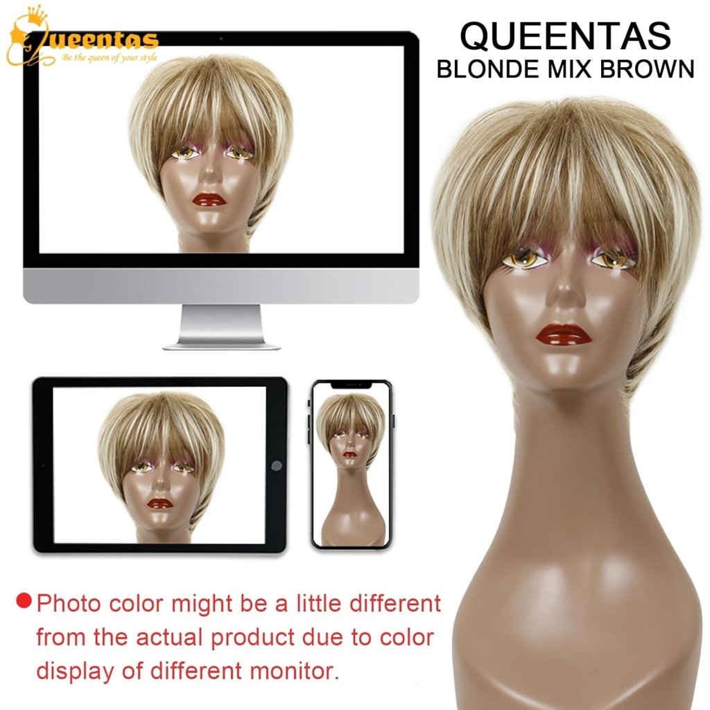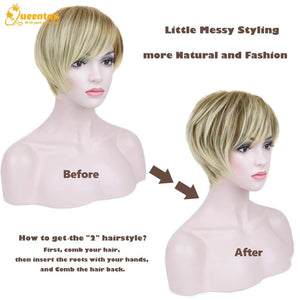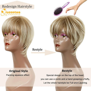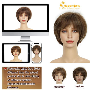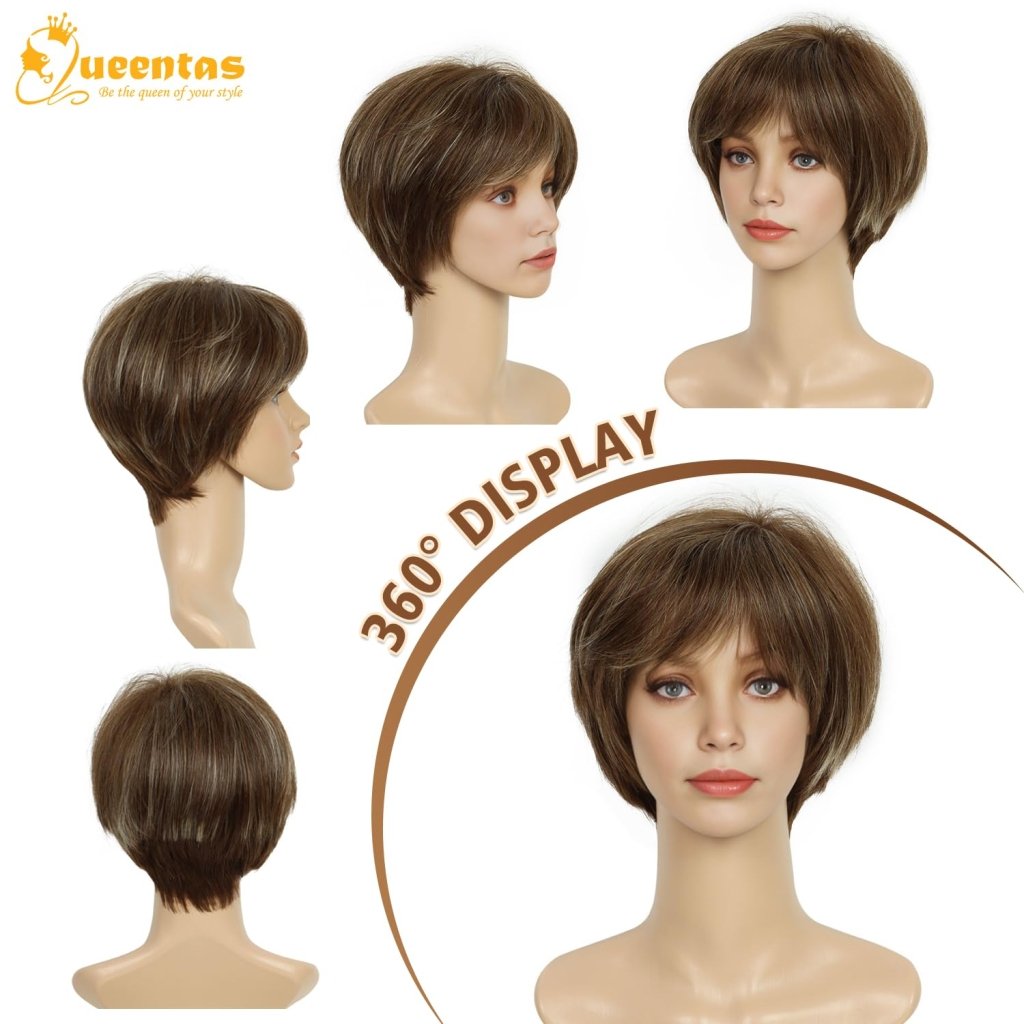 - A Refinement Women Short Wigs, Pixie Cut Style,Layered Wigs with Bangs.