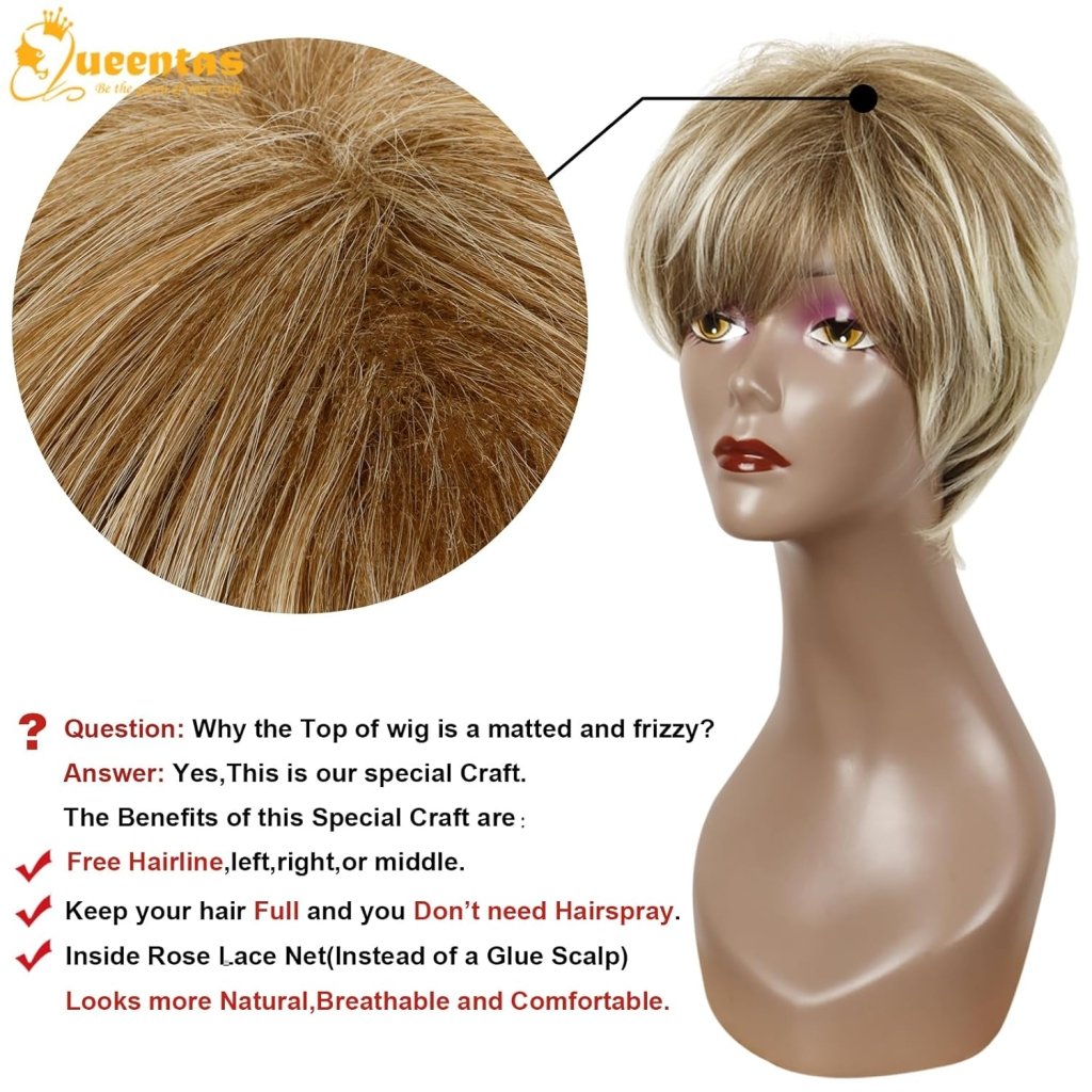 Pixie Layered Short Blonde Wigs for White Women Black Women Human hair