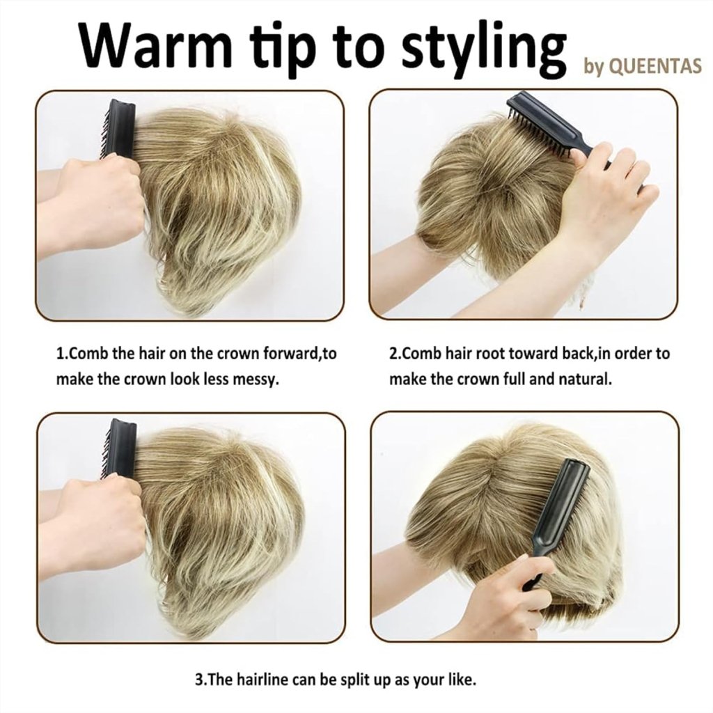 - How to style wigstrends short blonde hair wig? You can view the video under the 7 pictures at the bottom of the main picture. You can see the video taken by wigstrends factory and the fan show.