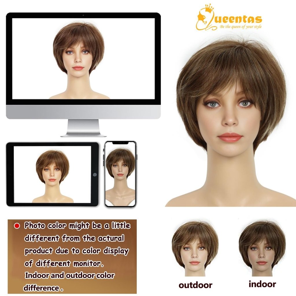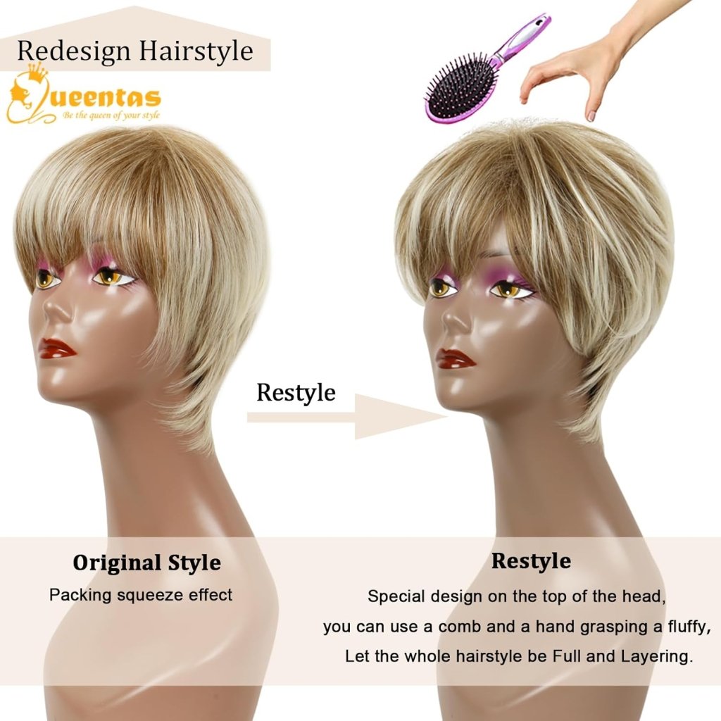 - If you do not want to spend too much time styling your hair every morning why not choose short pixie wig. The wig in picture has been slightly shaped and processed before we took the photo,besides this,they are total the same wig.You can style or shape wig by yourself or Ask professional hair stylist to customize it according to your needs