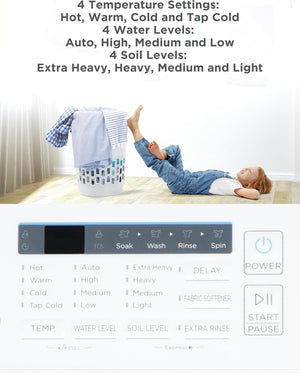 Portable Washer 6.6 lb. Capacity Washing Machine for Homes & Apartments 5 Wash Cycles Quick Connect Sink Adapter and Drain Hose Included Transparent Lid