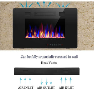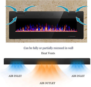R.W.FLAME 60" Recessed and Wall Mounted Electric Fireplace, Low Noise, Fit for 2 x 6 Stud, Remote Control with Timer, Touch Screen, Adjustable Flame Color and Speed, 750-1500W