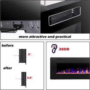 - Attractive and Practical Design: 3.86"D x 60"W x 18.11"H,The thickness of the new style is only 3.86 inches while the old one is 6 inches. And it operates the same as the old one. Also we redesign the location of main power and power cable, which makes the new fireplace more attractive and practical.