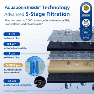 - ๐-๐๐ญ๐๐ ๐๐ ๐๐ ๐ ๐ข๐ฅ๐ญ๐ซ๐๐ญ๐ข๐จ๐ง: With the 5-stage deep filtration down to 0.0001 micron, this Philips reverse osmosis water filter system powered by Aquaporin Inside effectively reduces TDS, Lead, Calcium, and Chromium III, ensuring clean and pure taste of water. NSF/ANSI/CAN 372 certified for lead-free material